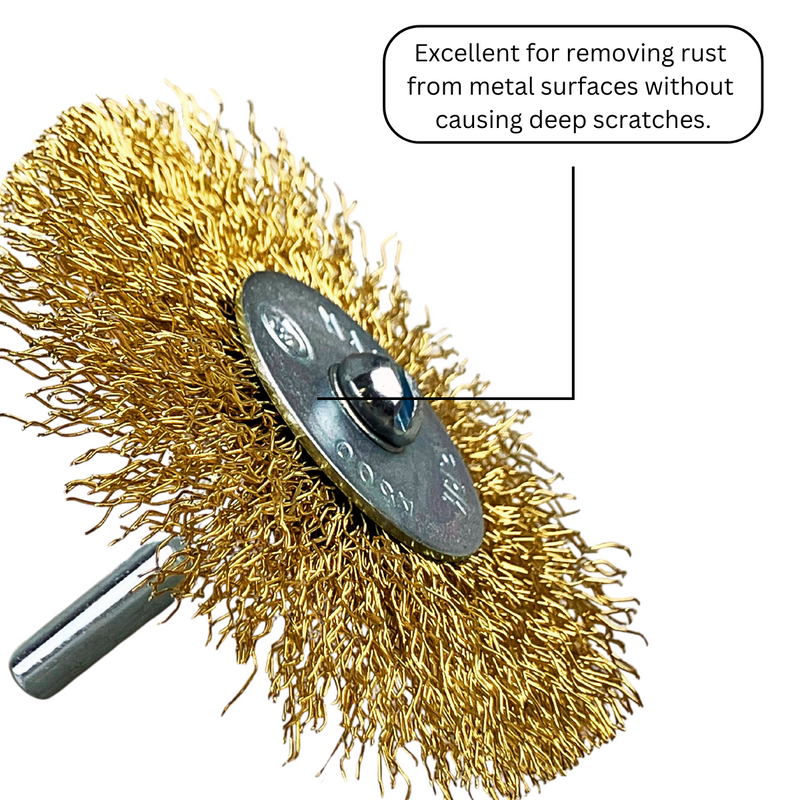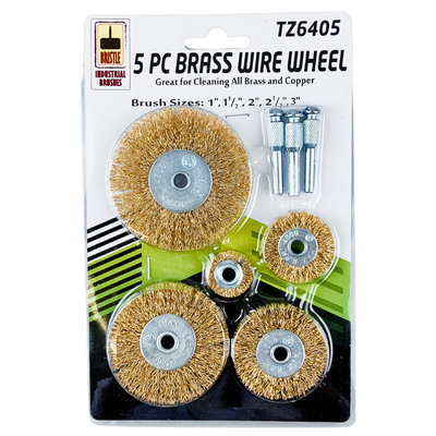 5-Pc Brass Wire Wheel Set | 1" to 3" (2.54 cm to 7.62 cm) Diameter | Includes 3 Shanks | for Standard Drills