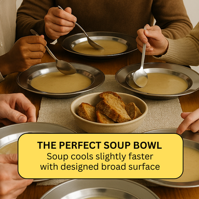 These Stainless Steel Soup Plates Will Dress Up Your Table. This Classic Design Is Timeless. Don't Just Use It For Special Occasions: It's Durable Enough For Everyday Use. Compare With Much Higher Prices At Trendy Shops. 8 1/2" In Diameter, This Shallow Bowl Is Great For Soups, Stews, And Even Your Main Dish.* 8.5" Diameter * Shiny Stainless Steel * Many Uses * Great For Dining * Durable For Everyday Use