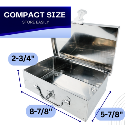 Keep your valuables protected in this compact security box. The undivided interior provides a lot of space. Great as a cash box, it is lockable and small enough to be portable. Box size 2-3/4" x 5-7/8" x 2 3/4". This box includes a security hasp.
