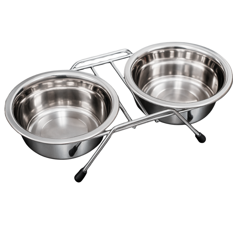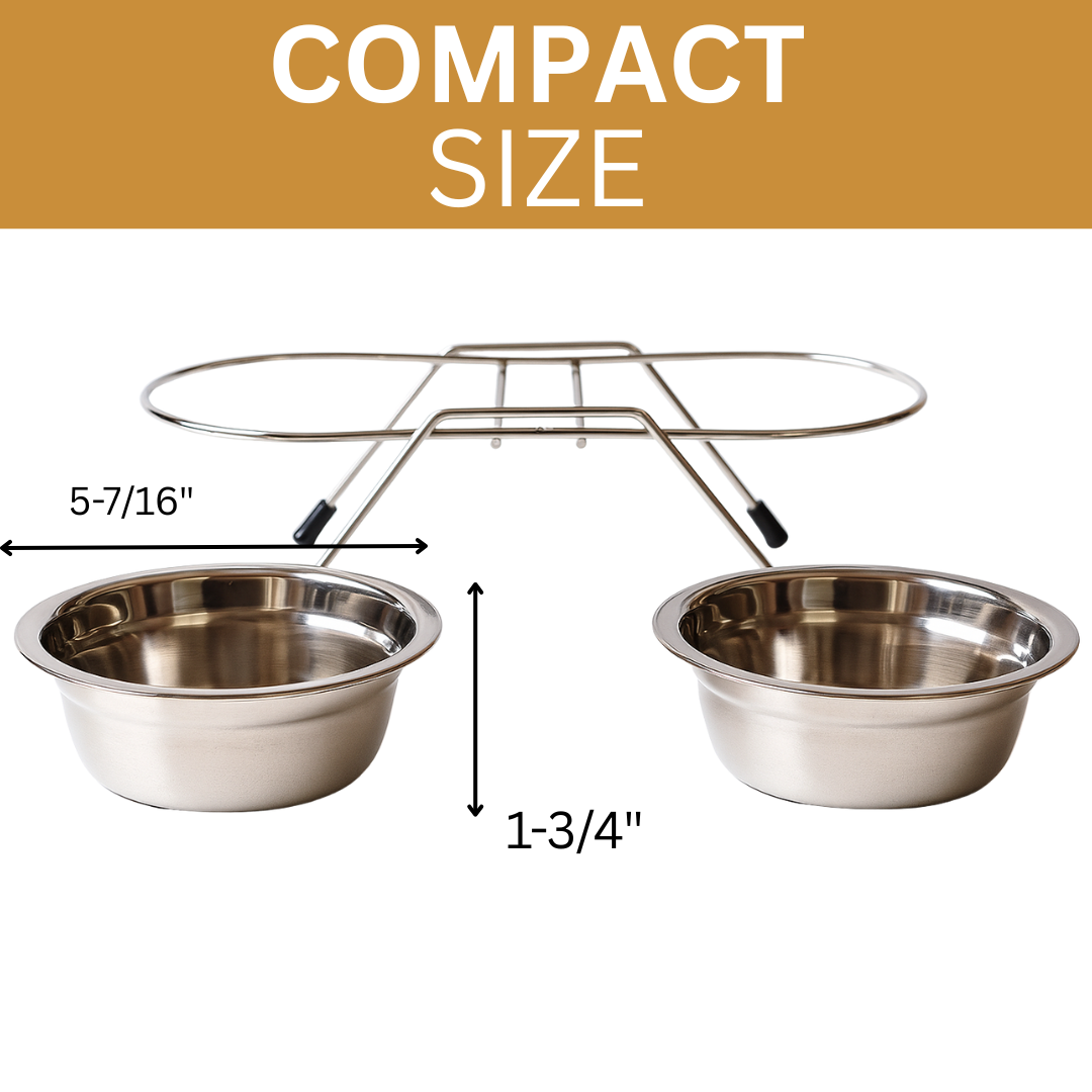Each removable stainless steel bowl measures 5 3/8" in diameter and 2 1/2" high, while the entire stand measures 11 1/2" across, making it the ideal size for your small pet’s daily meals.