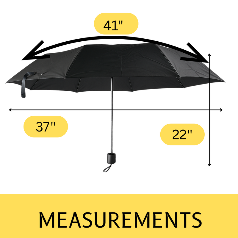 Stay ready for the rain with this ultra-convenient compact folding umbrella. Designed for everyday carry, it folds down to just 9.5 inches and easily fits into your bag, backpack, or glove compartment. Despite its small size, it opens up to a generous 41-inch arc, offering reliable coverage from wind and rain. The auto open button and locking mechanism make operation quick and hassle-free, while the included protective cover keeps it neat when not in use. Whether you're commuting, traveling, or simply running errands, this umbrella is your ideal on-the-go weather companion.